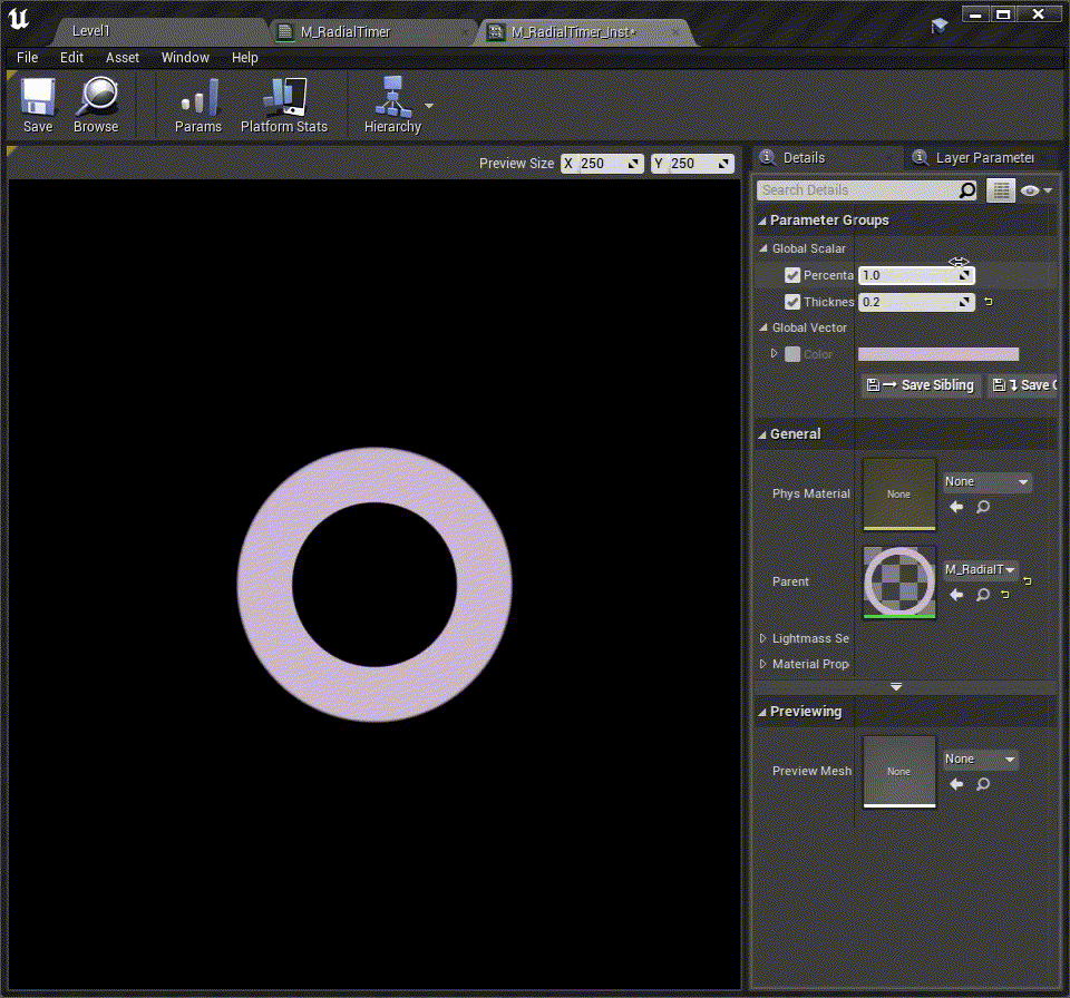 With the core functionality in place, I shifted my focus to polishing the artifact. This involved incorporating the feedback I had received. For the radial timer widget, I created a Material Instance which is easily updated via a Percentage parameter.